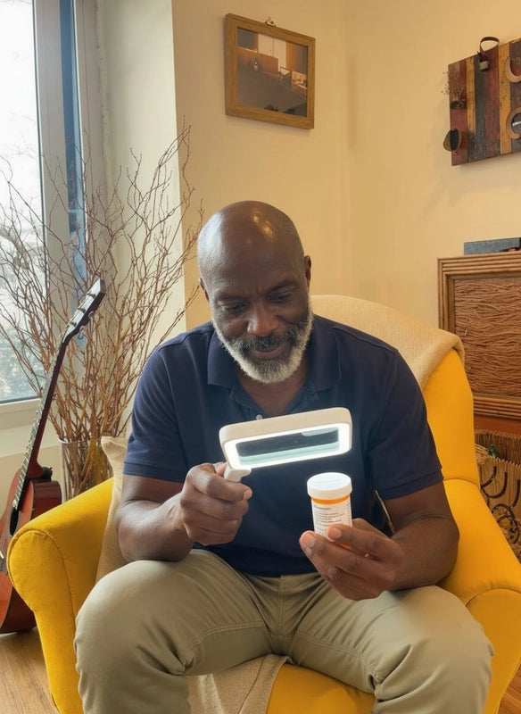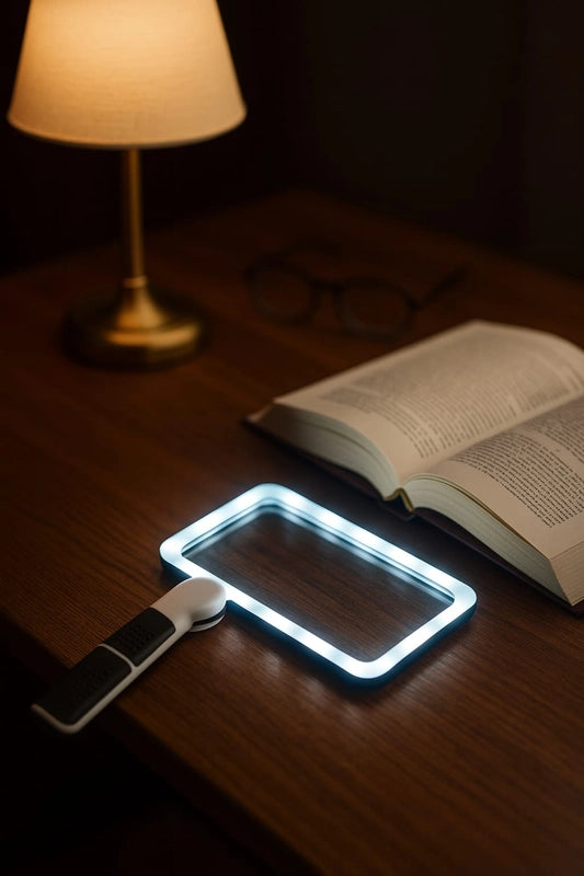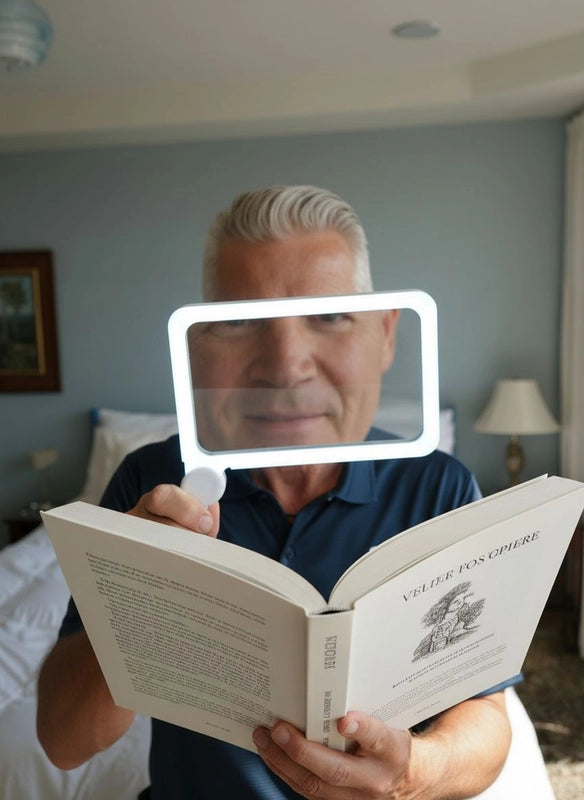 Yes! Visolero enlarges text 5× and lights it evenly, so even the smallest print becomes clear again. Perfect for reading labels, newspapers, books. all without eye strain.